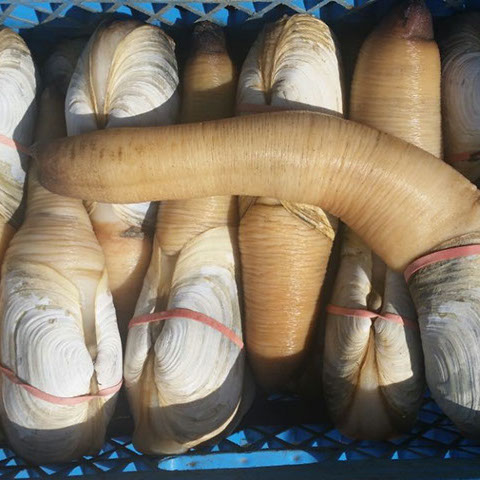 Wild geoduck grows naturally throughout the Puget Sound region. So, when the season is right, our harvesters take advantage in finding the glorious "King Clam" that can range from 1 to 8 lbs.