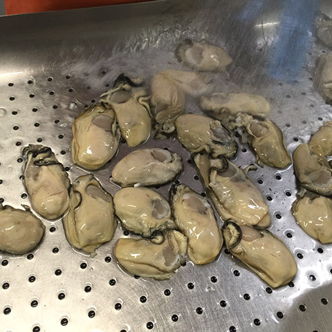 Our shucked oysters are thoroughly cleaned and inspected after being processed live! They are carefully packed in a container that is sealed and prepared for any international flight.